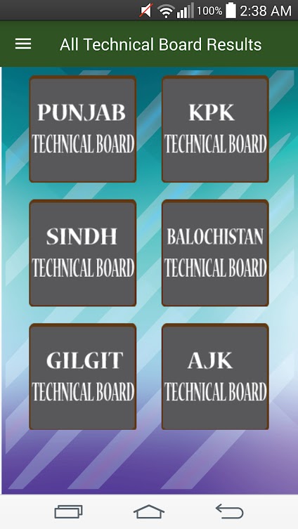 All Pakistan Technical board result application give facility to check your results online and also provide facility check latest date sheets and roll number slips.This application contain six main technical boards