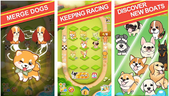 Buy, merge and manage your very own dog town. Start by getting small puppies, then upgrade them into bigger faster dogs so you can make them racing to earn coins!