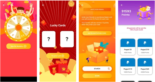 In Money Maker – Make Money and Earn Gift Cards app you only need to play games like lucky cards, spin the fortune wheel, complete surveys or invite friends. To earn money you need to get the most Points. Accumulate Points while you play to make money, you just have to perform simply tasks to make money and earn gift cards, yes can also earn gift cards simply by only make this simple tasks. Amazing right?