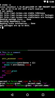 At first start a small base system is downloaded – desired packages can then be installed using the apt package manager. Access the built-in help by long-pressing anywhere on the terminal and selecting the Help menu option to learn more.