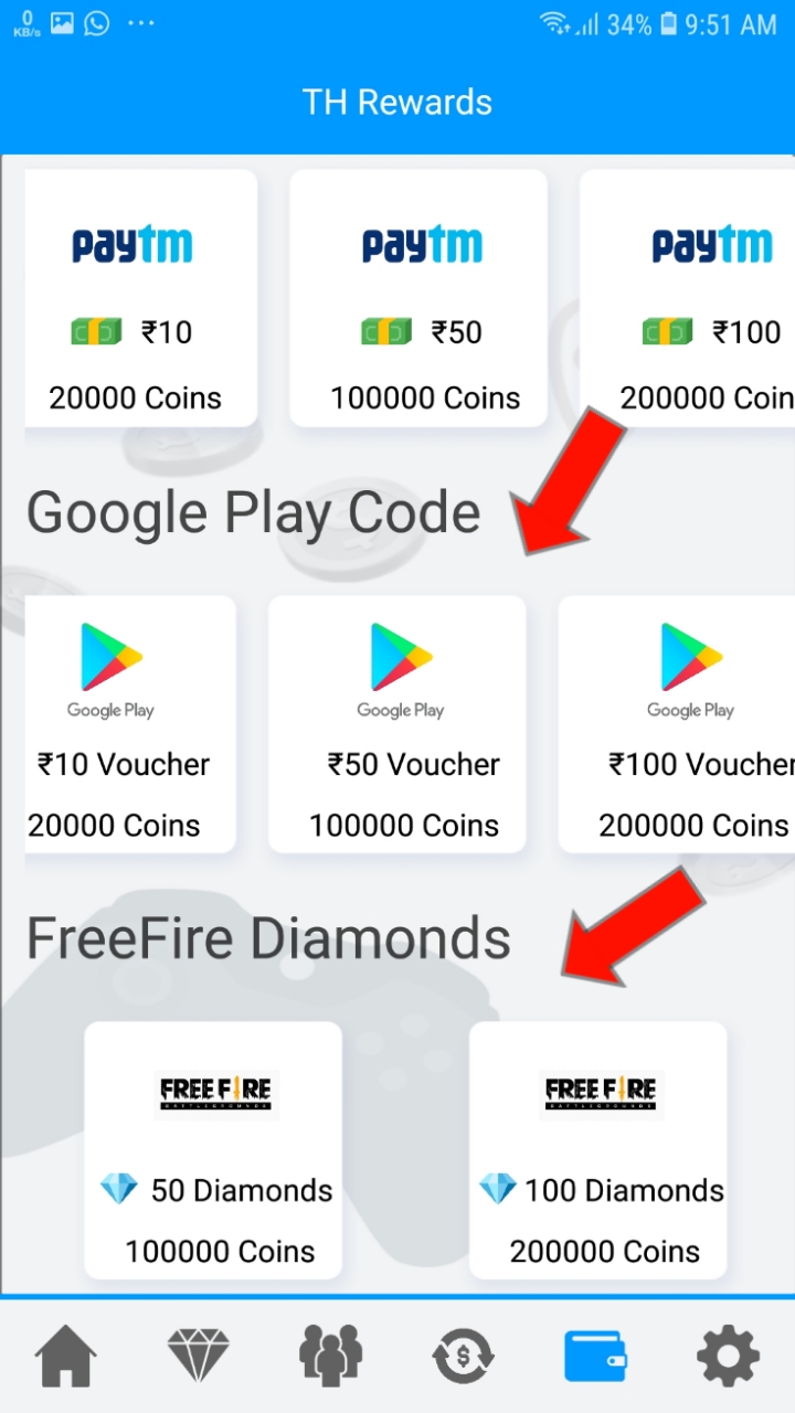 After you reach the minimum amount of 20000 coins. You can withdraw minimum 10RS Google Play Redeem Code and 50 Diamonds in Free Fire.